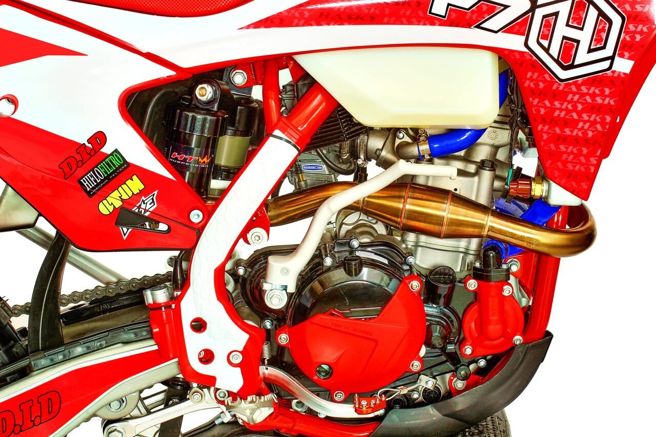 Мотоцикл Hasky F7X — идеальное соотношение мощности и веса. Мотоцикл с двигателем на 44 лс, сухой вес 106кг. Двигатель копия КТМ 2017г, подвески HTW, обода excel. Идеальный байк для демонстрации качественного результата в эндуро гонках любой сложности.